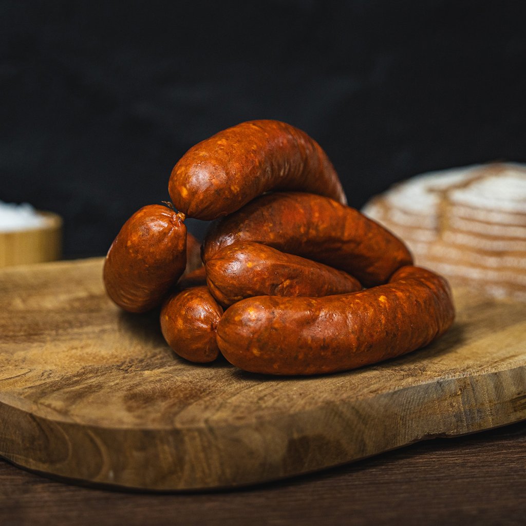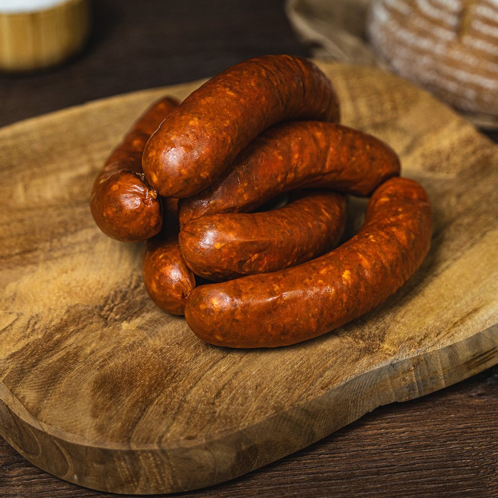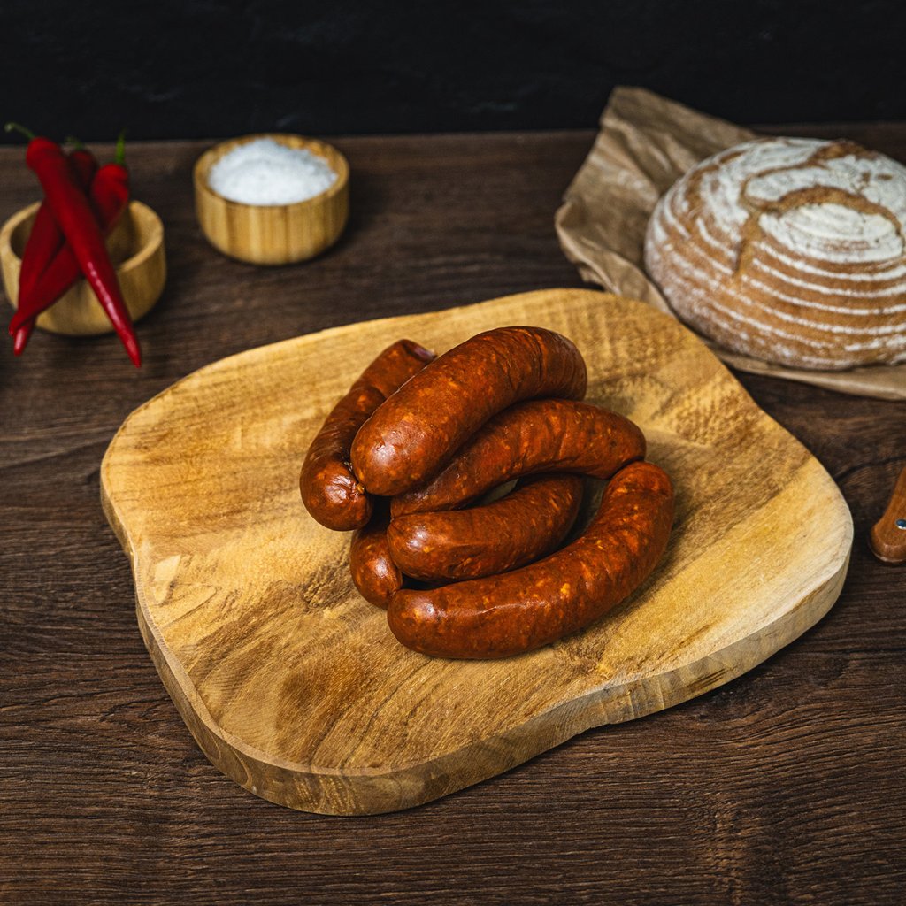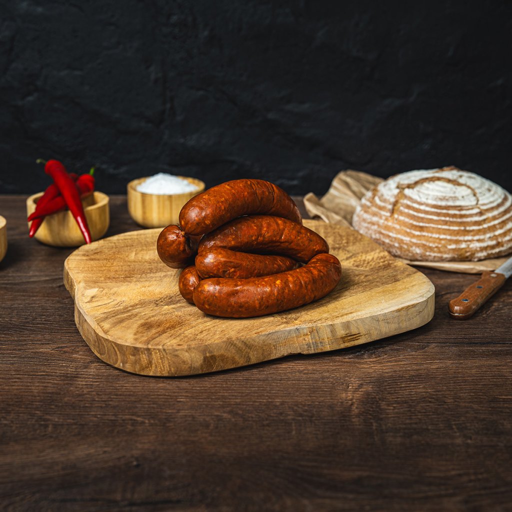 | Složení: | Vepřové maso, hovězí maso, směs koření, jedlá sůl max. 3 %, antioxidanty E300, E301, konzervant E250, přírodní kouřové aroma |