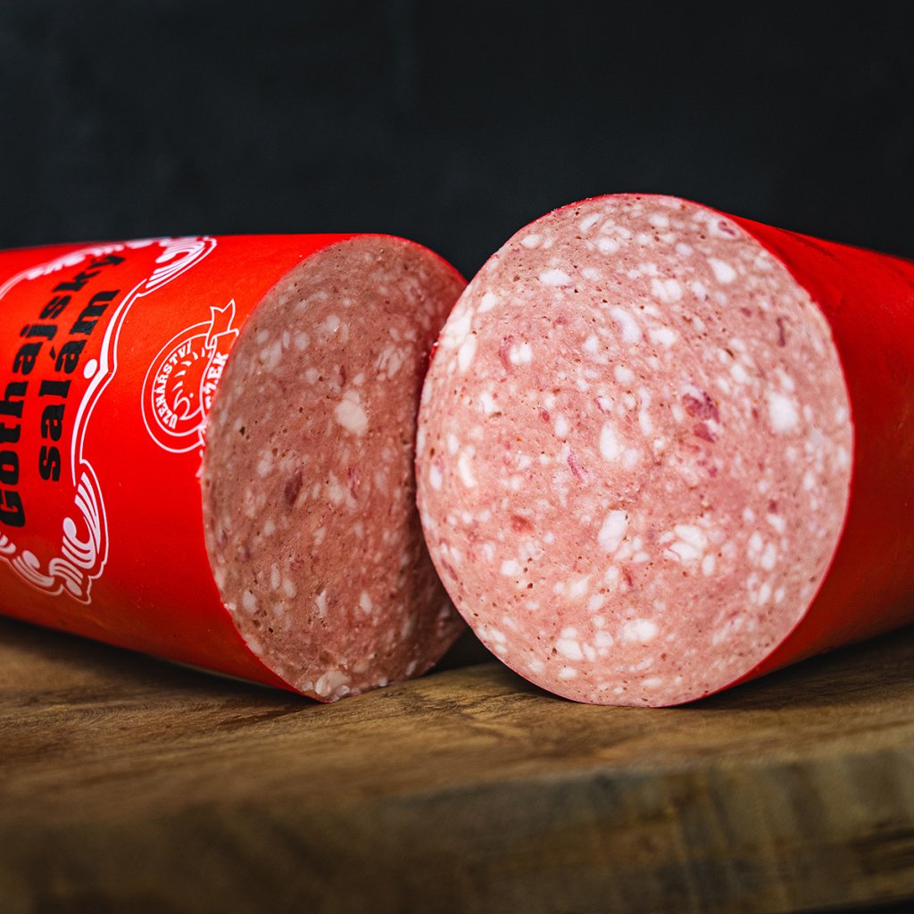 Salám s duší, ne unifikovaná hmota. Náš gothajský salám vyrábíme z kvalitního vepřového masa od českých dodavatelů, bez separátů, levných plnidel a chemie.