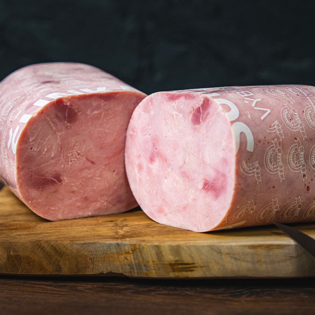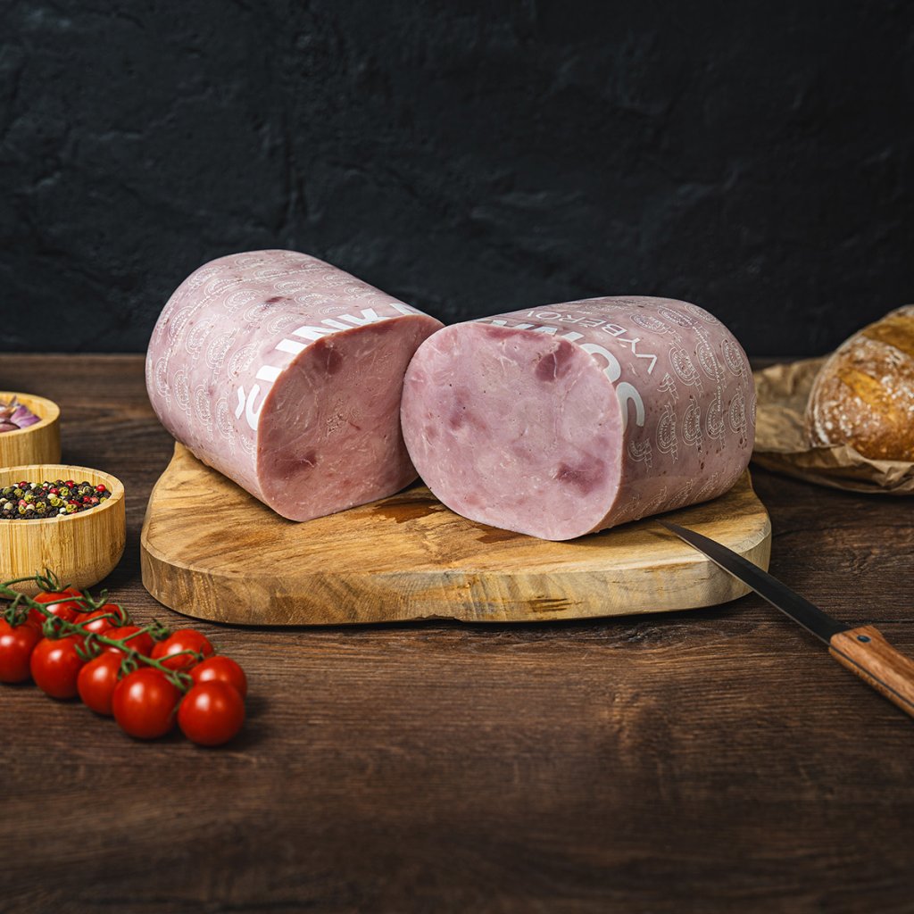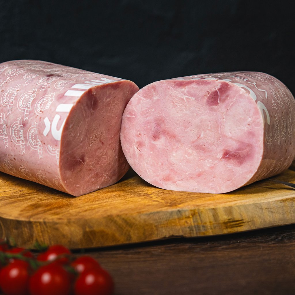 Tak takhle má chutnat pravá šunka. Naše dušená šunka je postavená na jednoduchosti, kvalitě a trpělivosti. Vyrábíme ji z pečlivě vybrané vepřové kýty bez kosti od českých dodavatelů. Maso šetrně nasolíme nálevem s kořením, necháme 48 hodin odpočívat, vložíme do forem, a poté pomalu dusíme při nízké teplotě, aby si zachovala svou šťavnatost, jemnost a krásnou růžovou barvu.